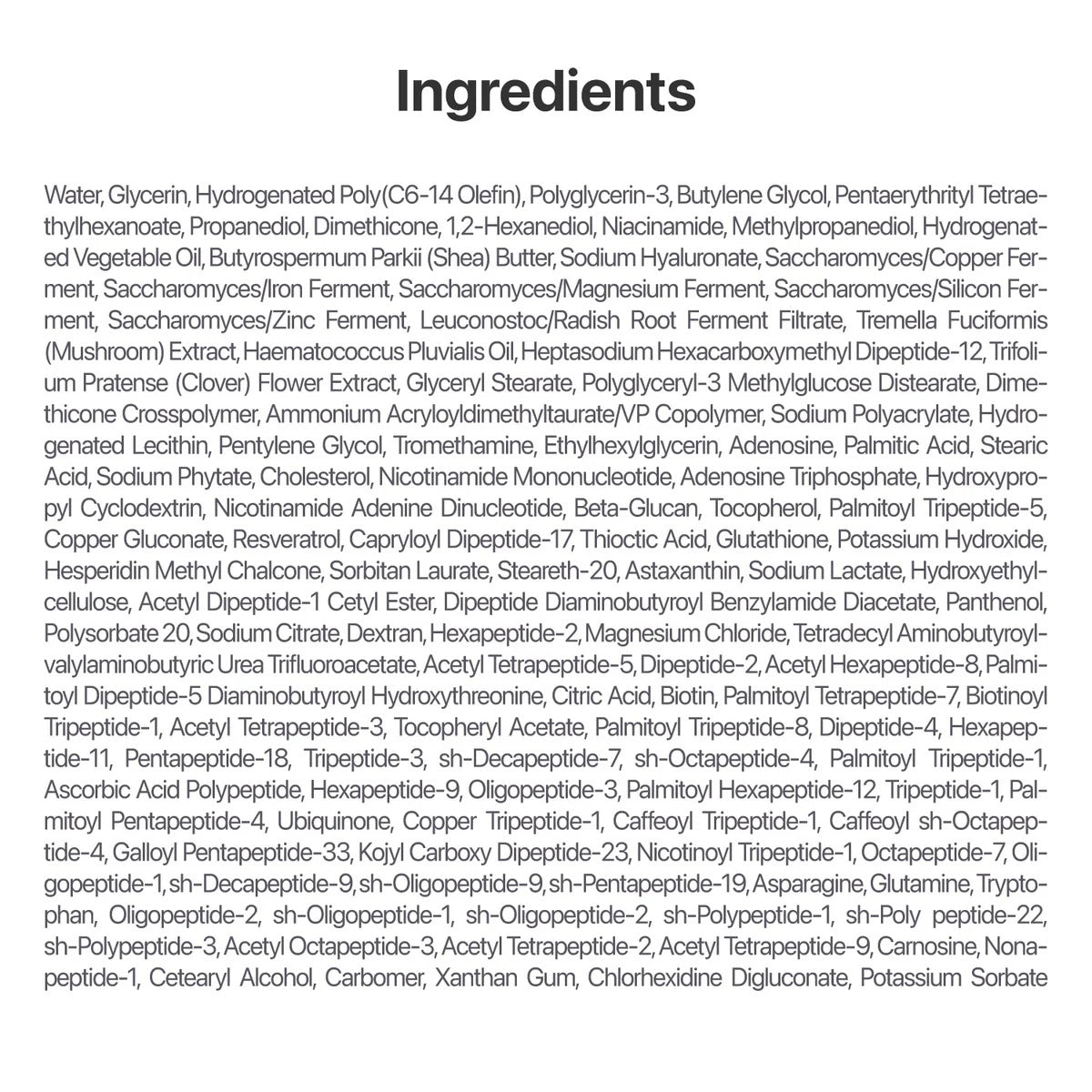 NAD+ (Nicotinamide Adenine Dinucleotide) – helps support skin resilience and visible lift.