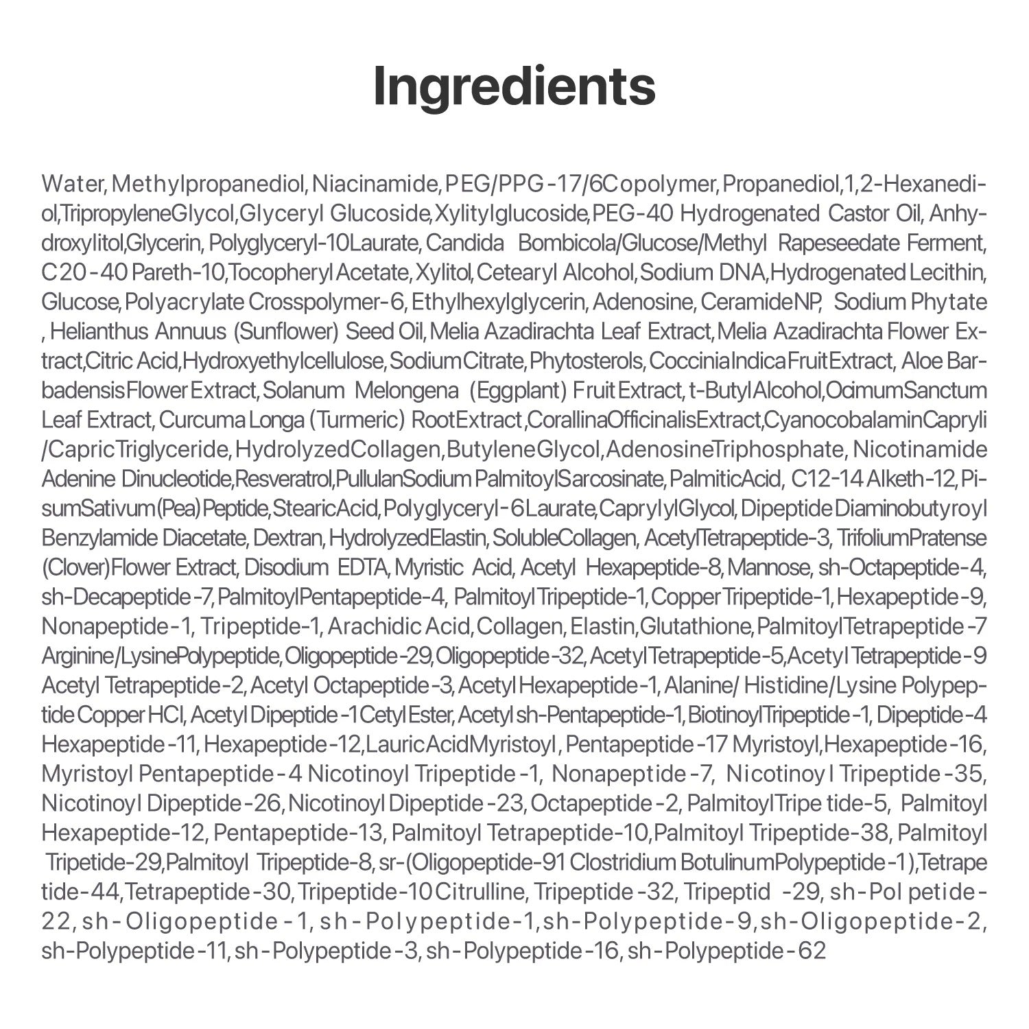 Peptides (50 complex types) – help enhance elasticity and firm skin.